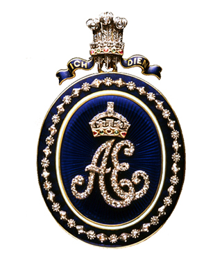 ペンダントヘッドは英国皇太子の紋章のデザインになっており、ICH DIEN(私は仕える)のモットーがブルーエナメルで装飾されています。