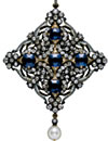 | ルネッサンスジュエリーにインスピレーションを得て、特にエナメル技法の復刻で19世紀を代表する作家となったカルロ・ジュリアーノの作品。白と黒の精緻なエナメル細工、サファイア、ダイヤモンドの精巧なセッティング、そして天然真珠との落ち着いた組み合わせの逸品です。 |